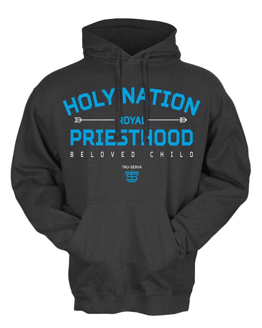7.5 oz., 80/20 cotton/polyester. Heather Charcoal. Nice soft mid-weight hooded sweatshirt!